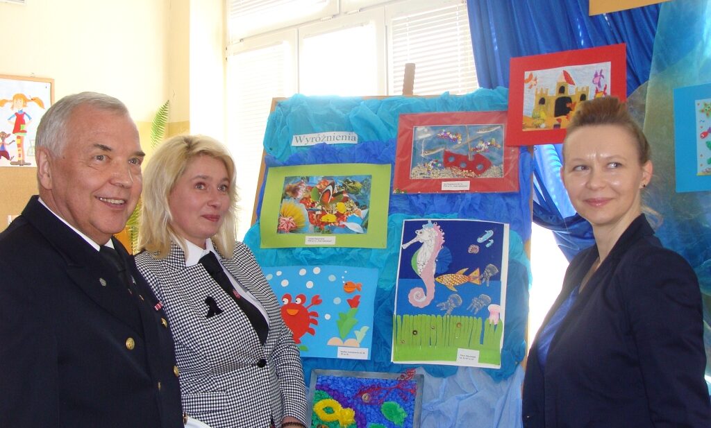 Spotkanie z dziećmi ze SP 42 – 21 kwietnia 2016 Finał konkursu plastycznego o tematyce morskiej. Wybrane prace plastyczne przekazane zostaną na statki grupy PŻM. W spotkaniu uczestniczyli: