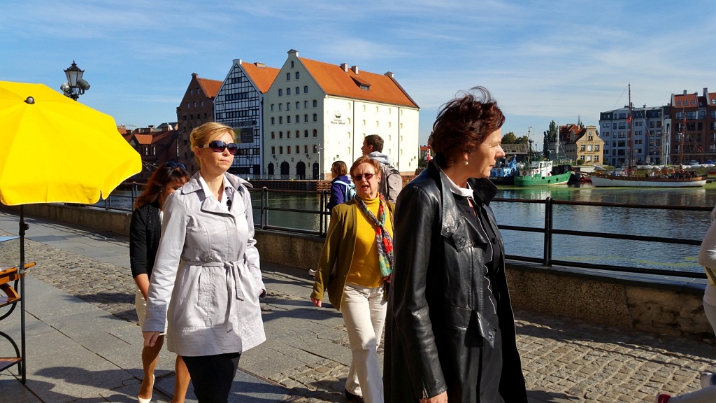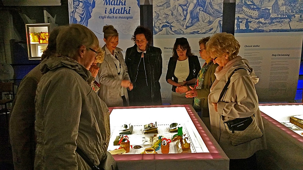 Należy wspomnieć, iż statek ten pływał u naszego armatora – PŻM P.P. Spotkanie było okazją do obejrzenia tej pięknej wystawy eksponującej m.in. historię chrztów statków, historię Klubu, zasłużone Matki Chrzestne, pamiątki z chrztów statków. Zaproszone zostałyśmy na krótki spacer po starej części miasta, podczas którego Przewodnicząca Klubu Janina Szymczak była naszym fascynującym przewodnikiem po historii Gdańska. Przeżyłyśmy też chwilę zadumy przy pomniku „Tym, którzy nie powrócili z morza” na wyspie Ołowiance. Spotkanie przy kawie i ciasteczkach sprzyjało wymianie wspomnień z uroczystości chrztów statków, wymianie doświadczeń organizacyjnych i promocyjnych Klubów oraz poznaniu się i rozmowie o planach współpracy naszych organizacji. Z wielką przyjemnością utrzymywały będziemy stały kontakt z Koleżankami z Trójmiasta.